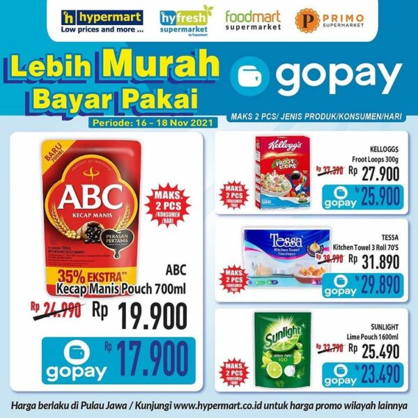 Promo HYPERMART – HARGA SPESIAL untuk transaksi pakai GOPAY BERLAKU mulai tanggal 16 – 18 November 2021