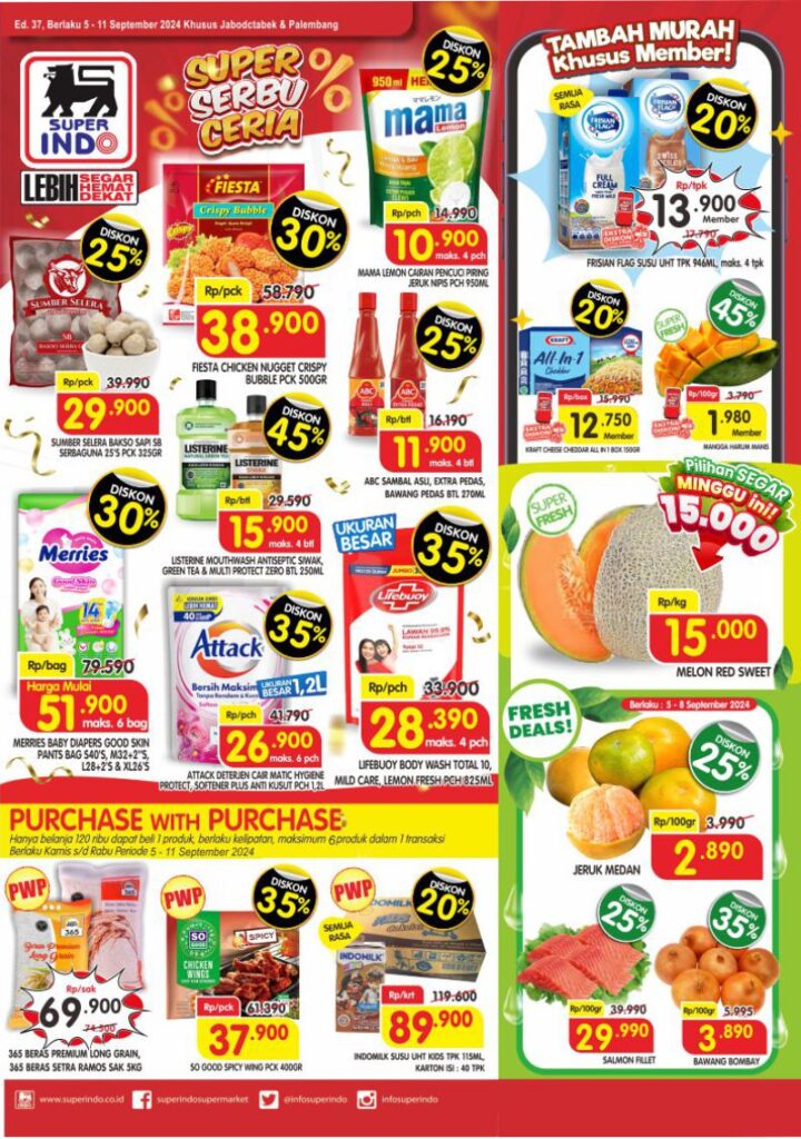 Nikmati promo Superindo katalog super hemat terbaru di area Jabodetabek dan Palembang untuk berbagai kebutuhan harian Anda! Temukan harga spesial untuk produk segar, bahan makanan, hingga barang kebutuhan rumah tangga selama periode 5-11 September 2024. Jangan lewatkan kesempatan untuk belanja hemat dengan penawaran berikut: