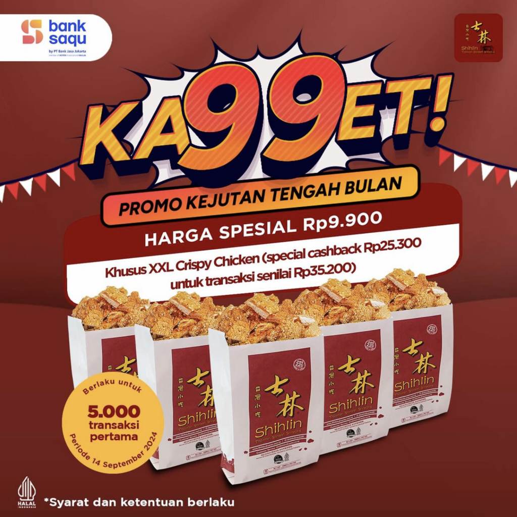 Promo SHIHLIN KA99ET BANK SAQU – Harga Spesial XXL Crispy Chicken cuma Rp. 9.900, berlaku hanya di tanggal 14 September 2024