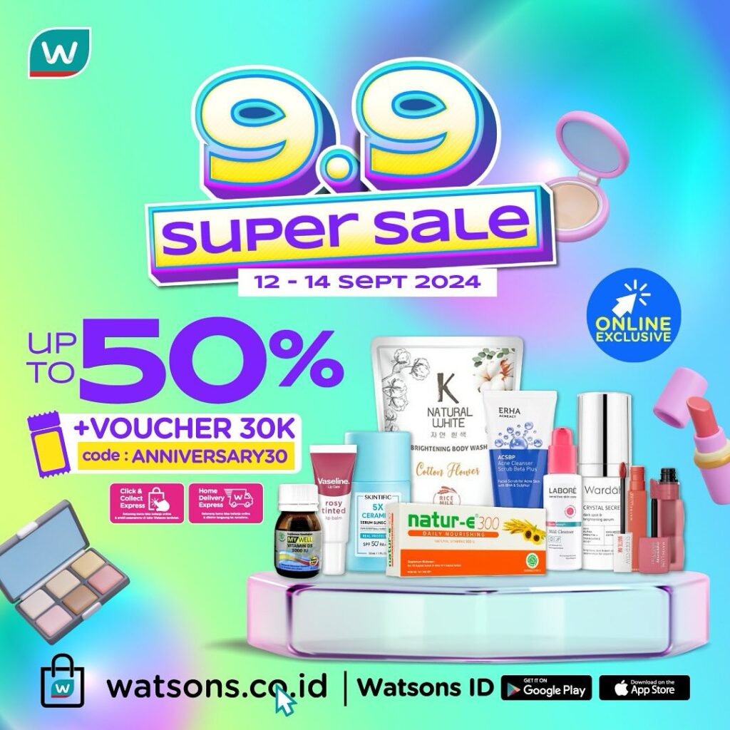 Watsons 9.9 Thank You Sale dapatkan Harga Diskon dan Extra Voucher! Berlaku hingga 14 September 2024.